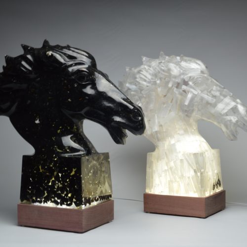 The white horse is made up of selenite an extremely sensitive crystal, that acts just like “liquid light” from the angelic realm and universe. The crystal striations are pathways for the illuminated substance of spirit.
